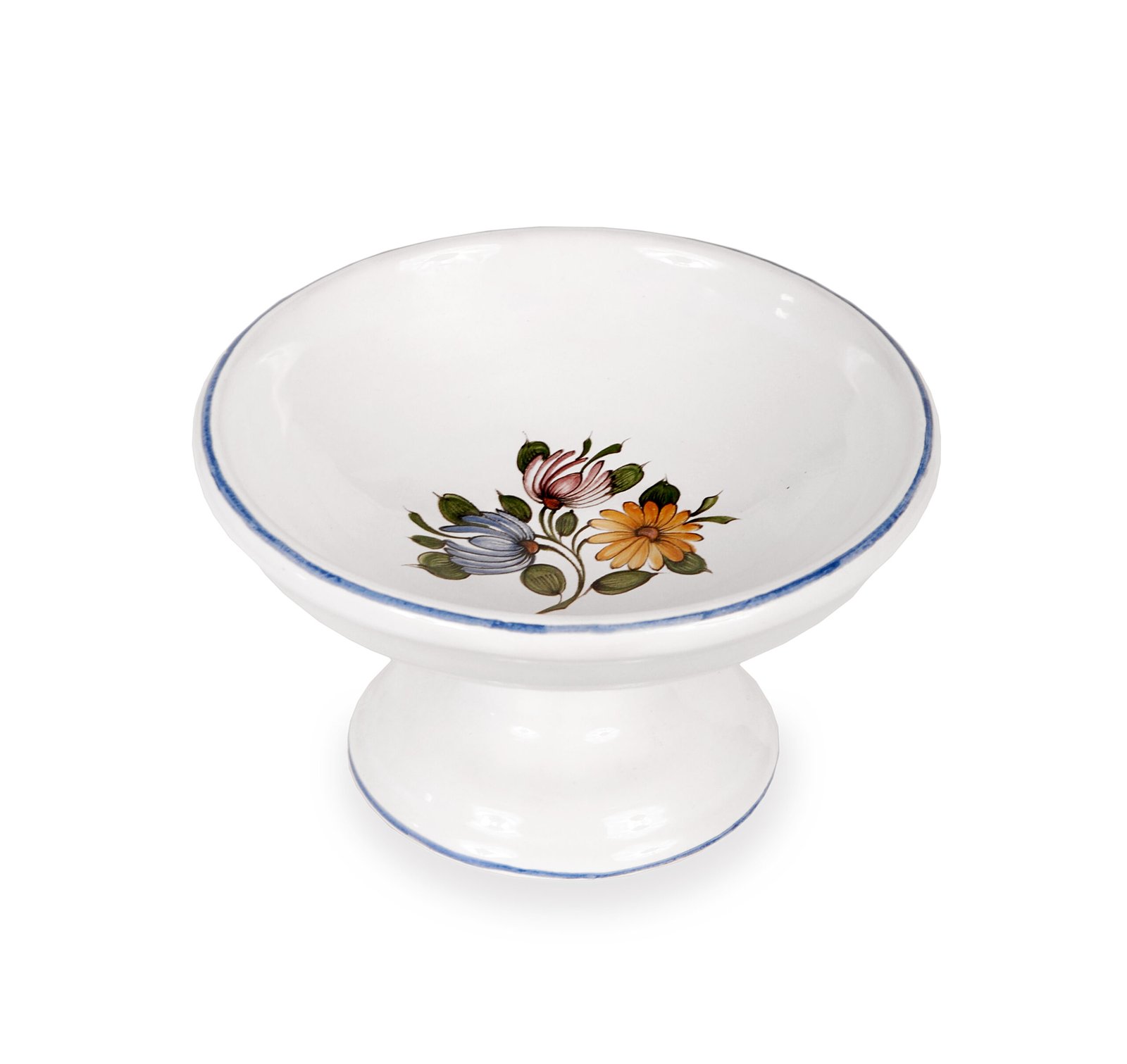 Coupelle vintage en céramique blanche, illustration de fleurs.