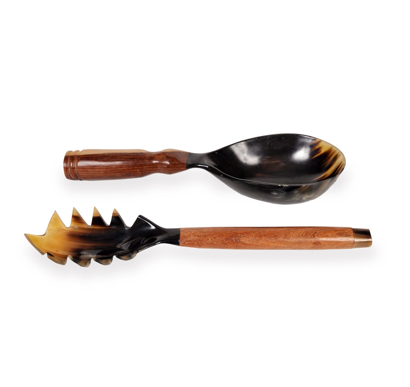 Duo de couverts de service en bois et corne Vintage.