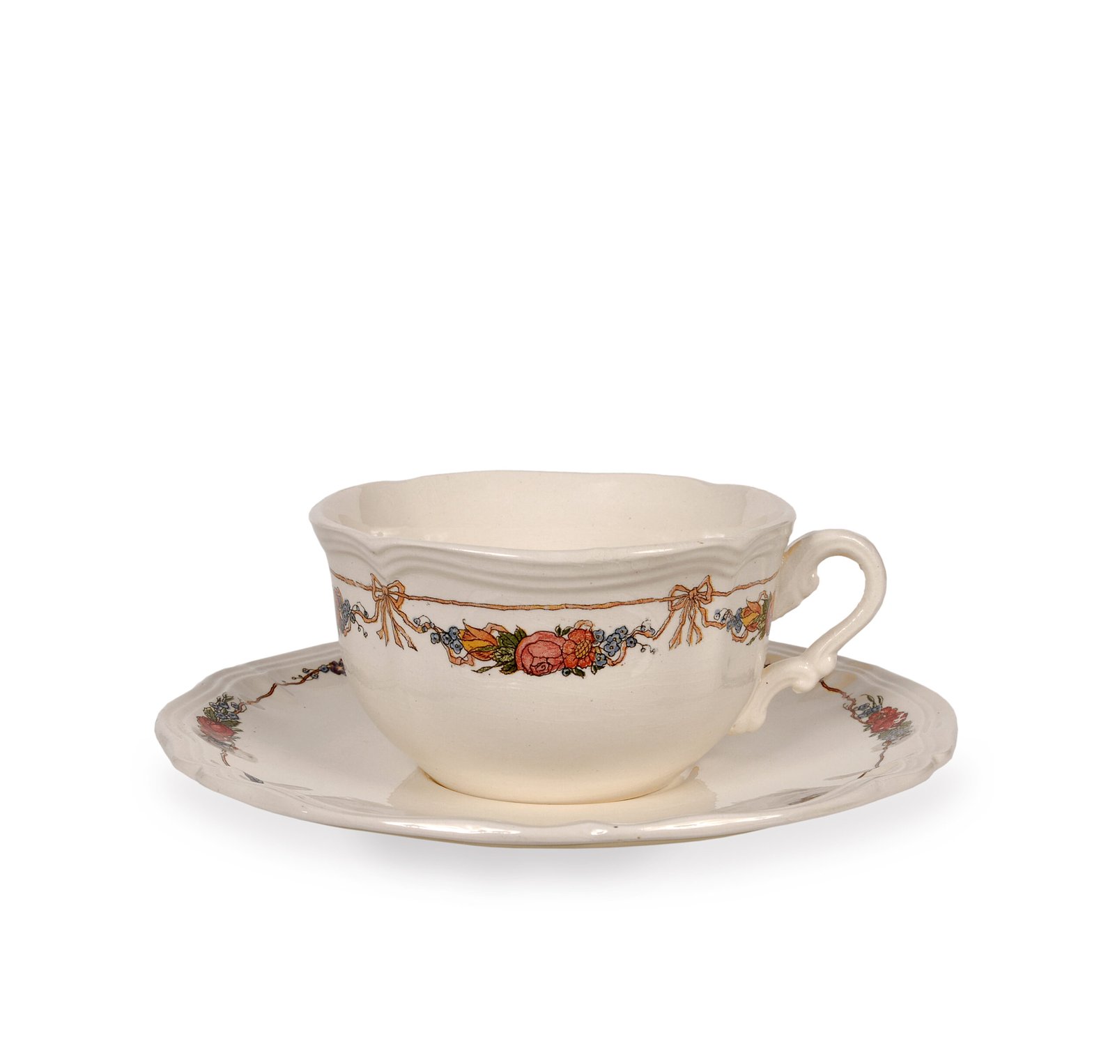 Sweet coffee: lot de six tasses XL avec soucoupes. Manufacture de Sarreguemines, fabriqué en France.