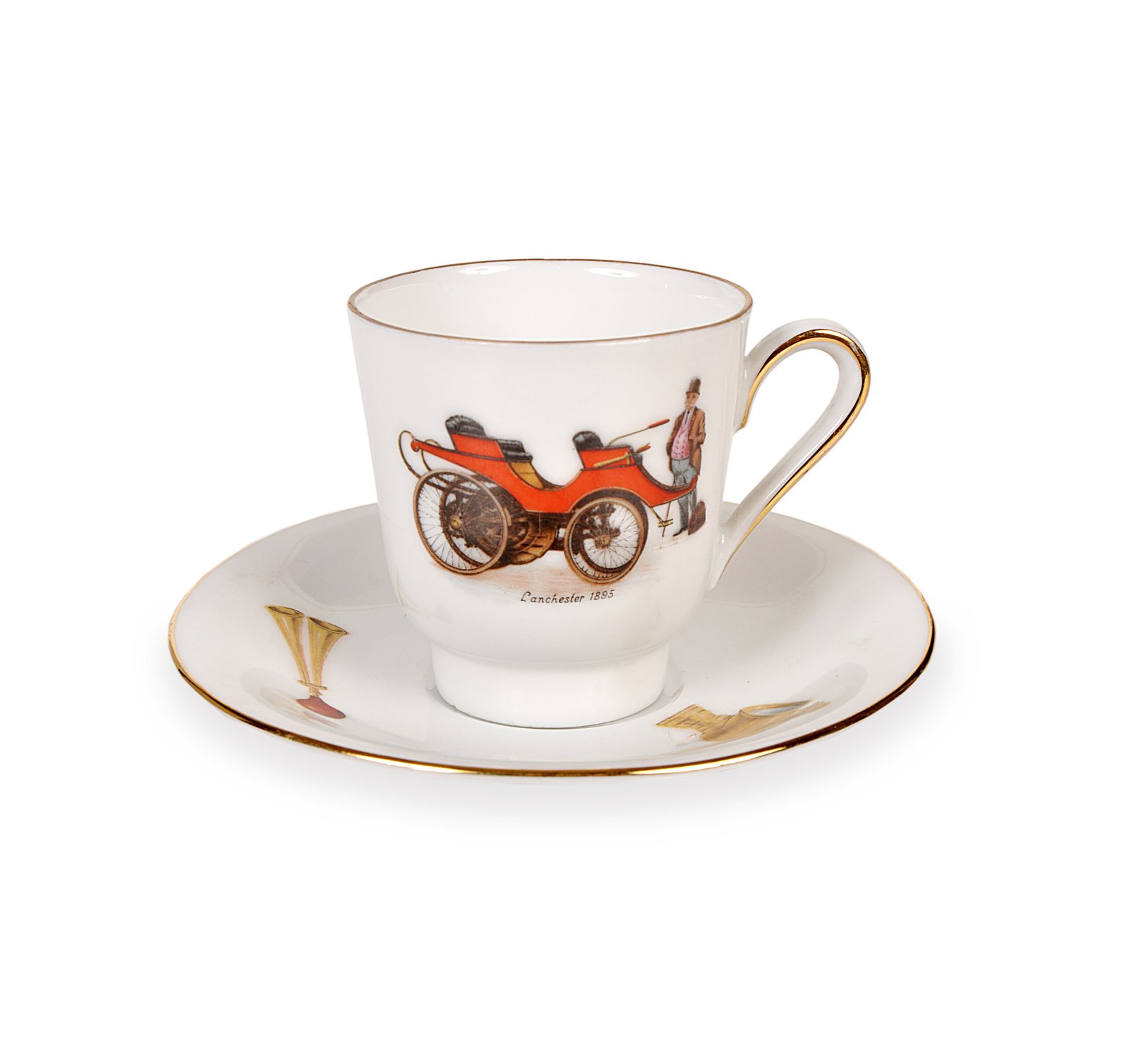 Lot de tasses à café illustrées en porcelaine.